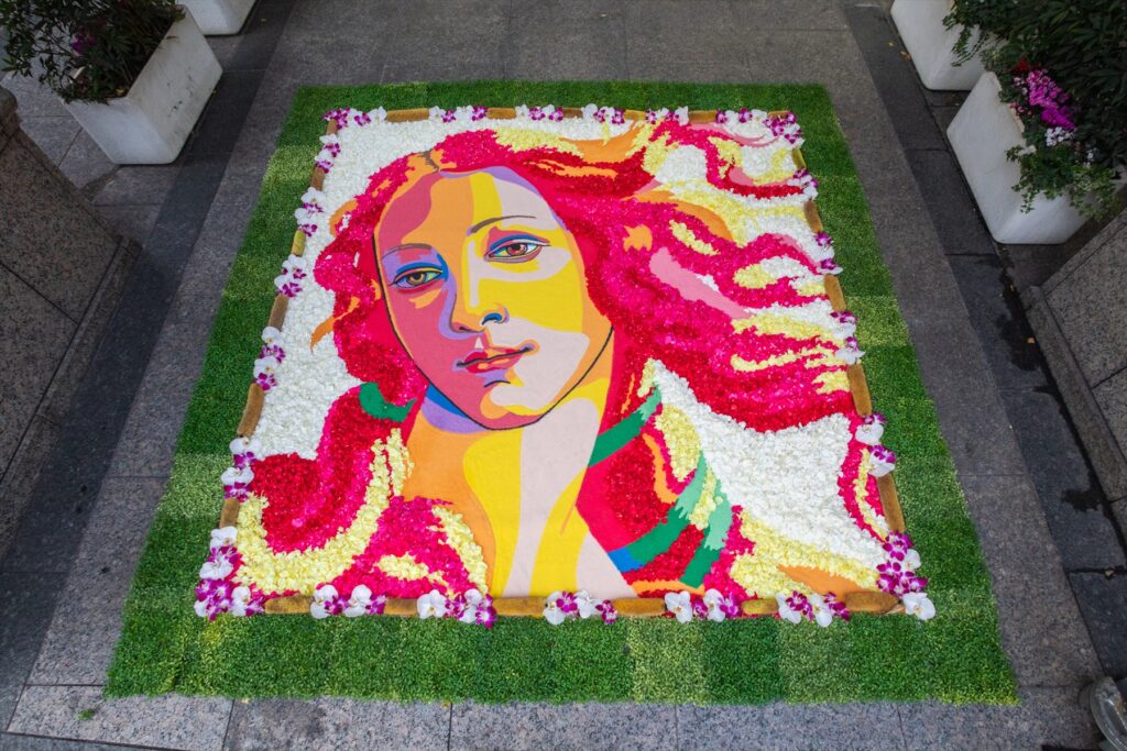 今年のテーマは「ル・シャンゼリゼ・フルーリ~美術通り御堂筋~」。パリのルーヴル美術館やオルセー美術館の名画をモチーフに、20,000本のカーネーションで7枚の花絵が描かれ、御堂筋を華やかな“美術通り”へと変貌させます。