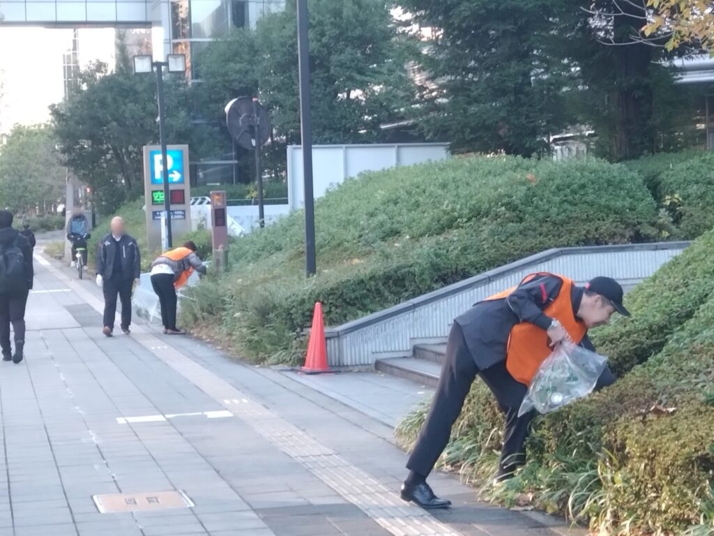 OBPエリア全域の歩道・遊歩道等の清掃活動や放置自転車(違法駐輪)へのタグ付けによる駐輪マナーの啓発、受動喫煙防止・路上喫煙防止の啓発を行いました。今回は、2025年最後の開催となりました。