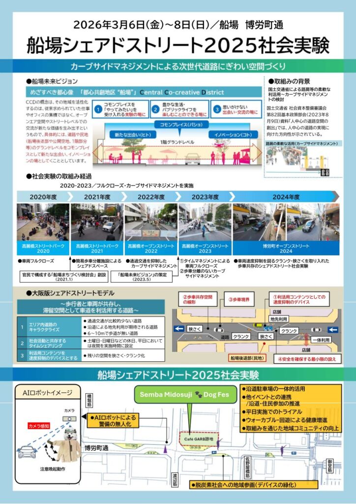 協力:久宝連合振興町会、愛日連合振興町会、(一社)御堂筋まちづくりネットワーク、鳥取大学、ノガ珈琲、㈱Mellow、新都市企画㈱、北御堂(本願寺津村別院)、㈱Asobolabo、㈱tent tent、ペッツオーライ㈱、㈱Cyujo